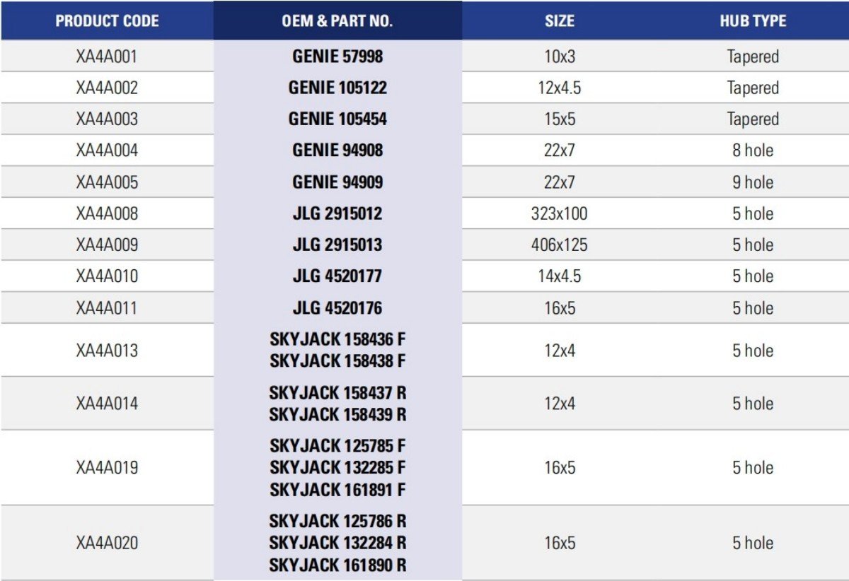 Ground Force 500 scissor lift line offers replacement parts for major OEMs including Genie, JLG, Skyjack, and Haulotte. Designed for lateral stability, these solid non-marking tire assemblies are ideal for electric or slab scissor lifts.