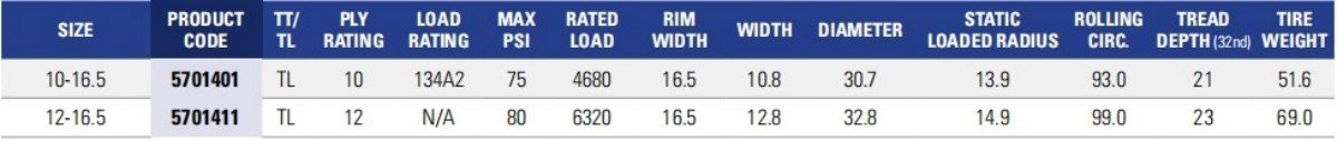 The Trac Chief® XT is for use on skid steer, backhoe, compact tractor, aerial work platform lifts and three wheel rough terrain forklifts in general purpose applications. It features a rugged tread compound, nylon cord construction and flat profile for increased traction, stability and tread life Other features include a rim guard that protects the tire bead against damage from foreign material/debris