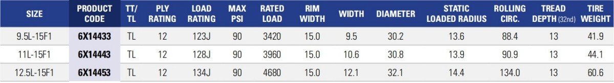 Used for highway service implement applications, the FSE F-1 Implement tire is specially designed for towed vehicle applications at intermittent highway speeds. DOT approved for highway use.