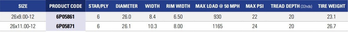 Designed for heavy payload applications, the PXT2 is a non-directional tire with specific front and rear sizing configurations.