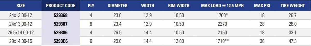 The Ultra Trac tire is the right approach for those specialized applications where high flotation and turf preservation is essential. With a wide, flat footprint and reduced void in the tread it offers maximum turf protection. Ultra Trac tires are most often utilized on golf and grounds maintenance equipment.